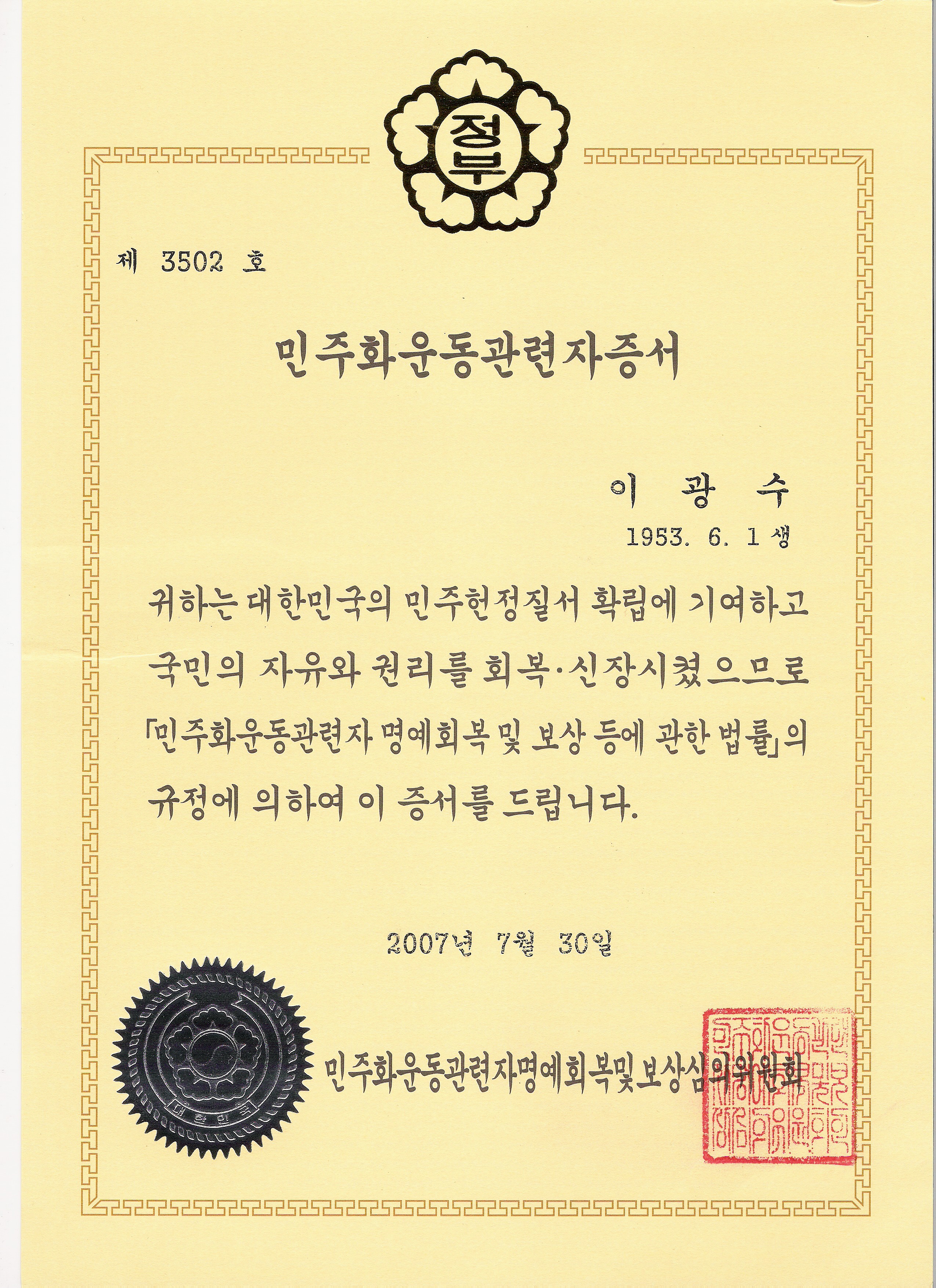 ¹ÎÁÖÈ ¿îµ¿ °ü·ÃÀÚ Áõ¼