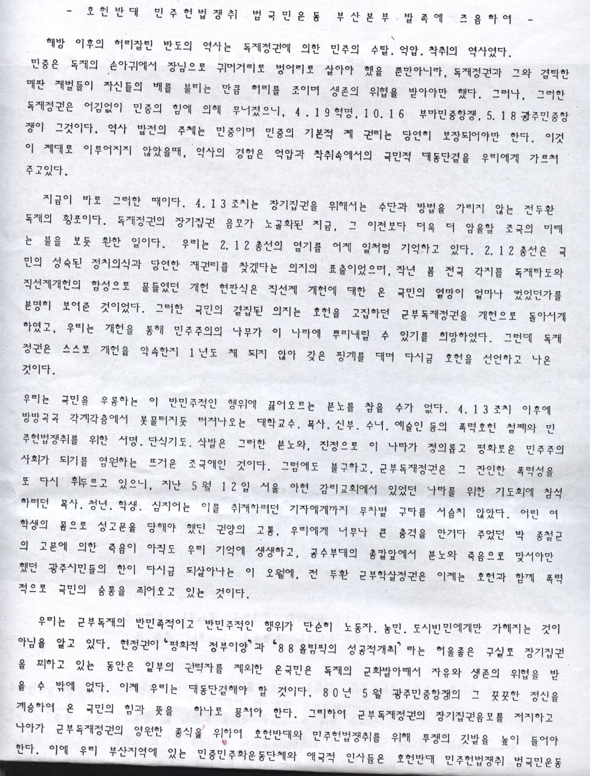 ¼±¾ð¹®(È£Çå¹Ý´ë ¹ÎÁÖÇå¹ýÀïÃë ¹ü±¹¹Î¿îµ¿ ºÎ»êº»ºÎ ¹ßÁ·¿¡ ÁîÀ½ÇÏ¿©)